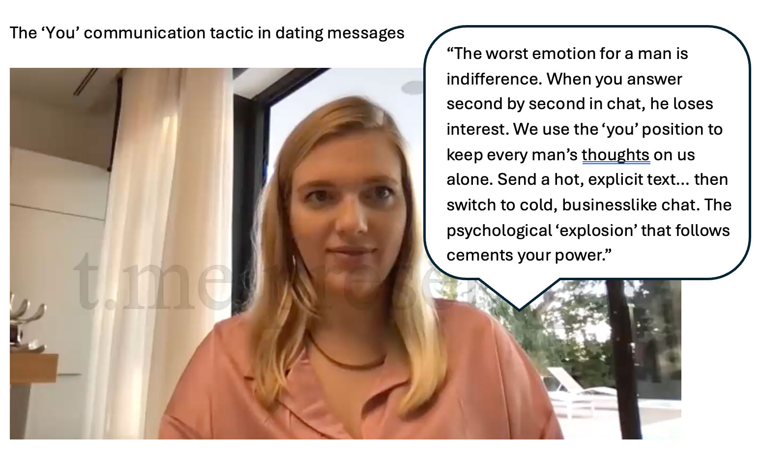 In reality, they advocate leveraging relationships in games of emotional manipulation for material gain. Their materials teach clients to destabilize partners through techniques including push-pull mood swings, cryptic messaging and sensory anchors designed to condition reflexive attachment—tactics aimed at extracting money, attention, and control.